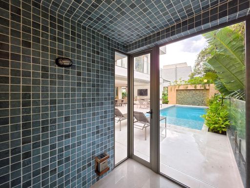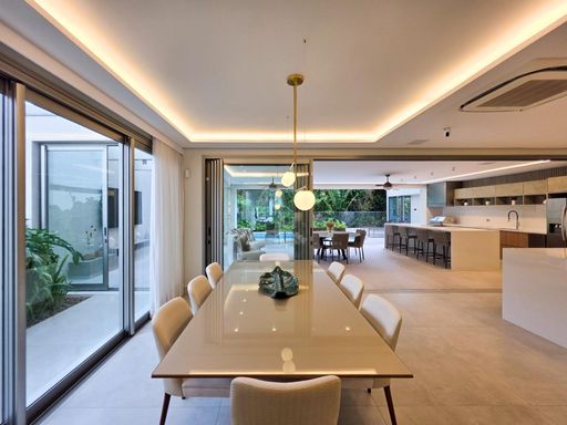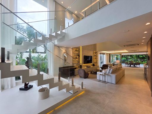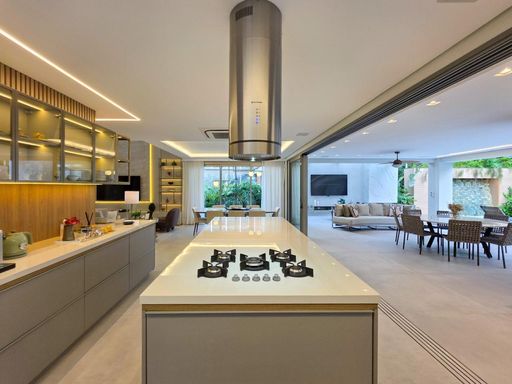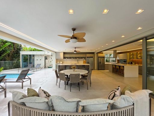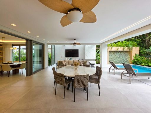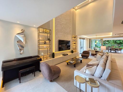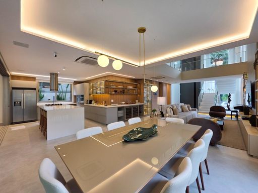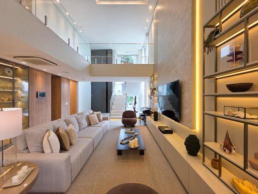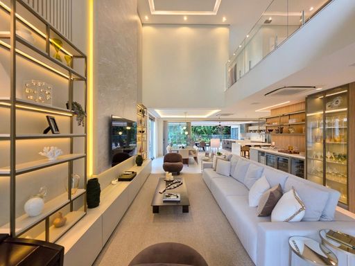 As 6 suítes garantem privacidade e conforto para toda a família, e o fato de já estar mobiliada é um grande plus, facilitando a mudança de quem está em busca de uma casa pronta para morar. O conceito de ambientes amplos, arejados e iluminados, além de contribuir para uma sensação de liberdade e bem-estar, também traz um toque de sofisticação que combina com o estilo de vida exclusivo da Riviera.