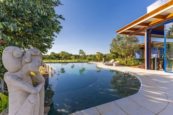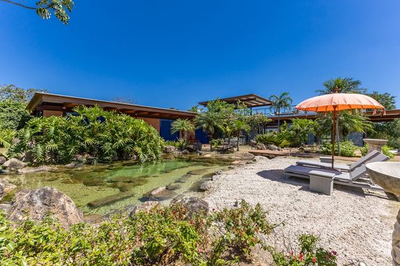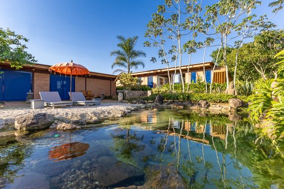 • Lago privativo de 180 m² com prainha, profundidade de até 1,6 m, espaço para nadar e queda d’água