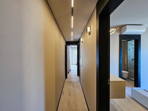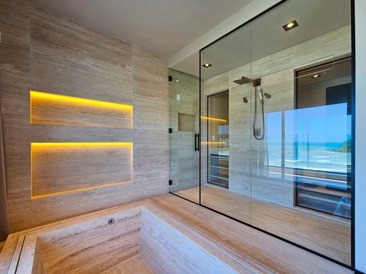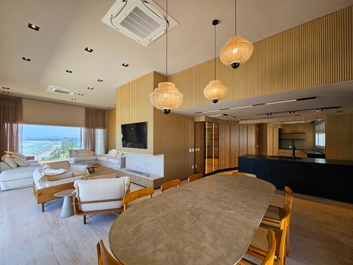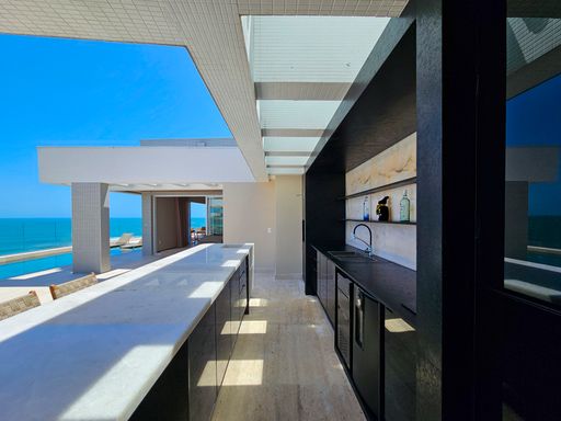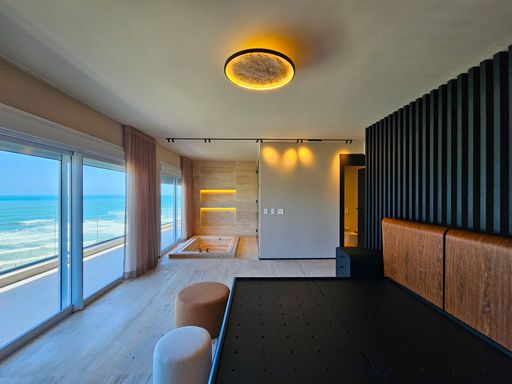 Com 619 m² de área útil, a cobertura reúne elegância, amplitude e conforto em cada detalhe. São 6 suítes sendo 1 delas master com uma banheira de imersão incrível e o melhor com vista para o mar, todas planejadas para máximo bem-estar, além de 2 lavabos estrategicamente distribuídos. A suíte master é um santuário particular: ampla, com banheira de imersão com vista para o mar, closet generoso e um ambiente que traz tranquilidade e exclusividade em todos os detalhes.